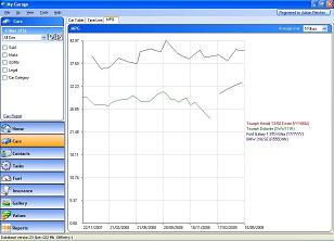 Car MileageThe mileage tab will display the recorded mileage over time for your car. The chart is based on tasks and fuel purchases. Previous owners mileage will show in a different colour. |  |