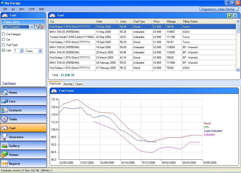 Use the filter on the left hand side to limit thos to fuel types / cars / dates etc.