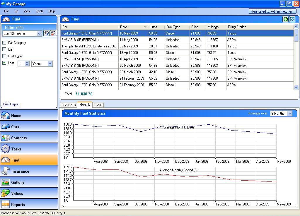 |  | Average Fuel UsageSee your average fuel usage in both litres and costs over a period of time.