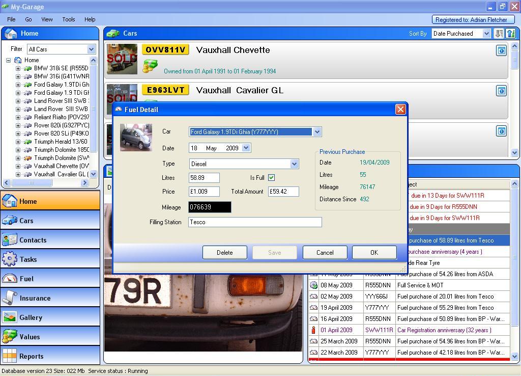 Fuel Purchases Fuel PurchaseEnter fuel purchase information to get the mpg calculations. Mileage will automatically update the current mileage for the car, and potentially trigger reminder warnings.