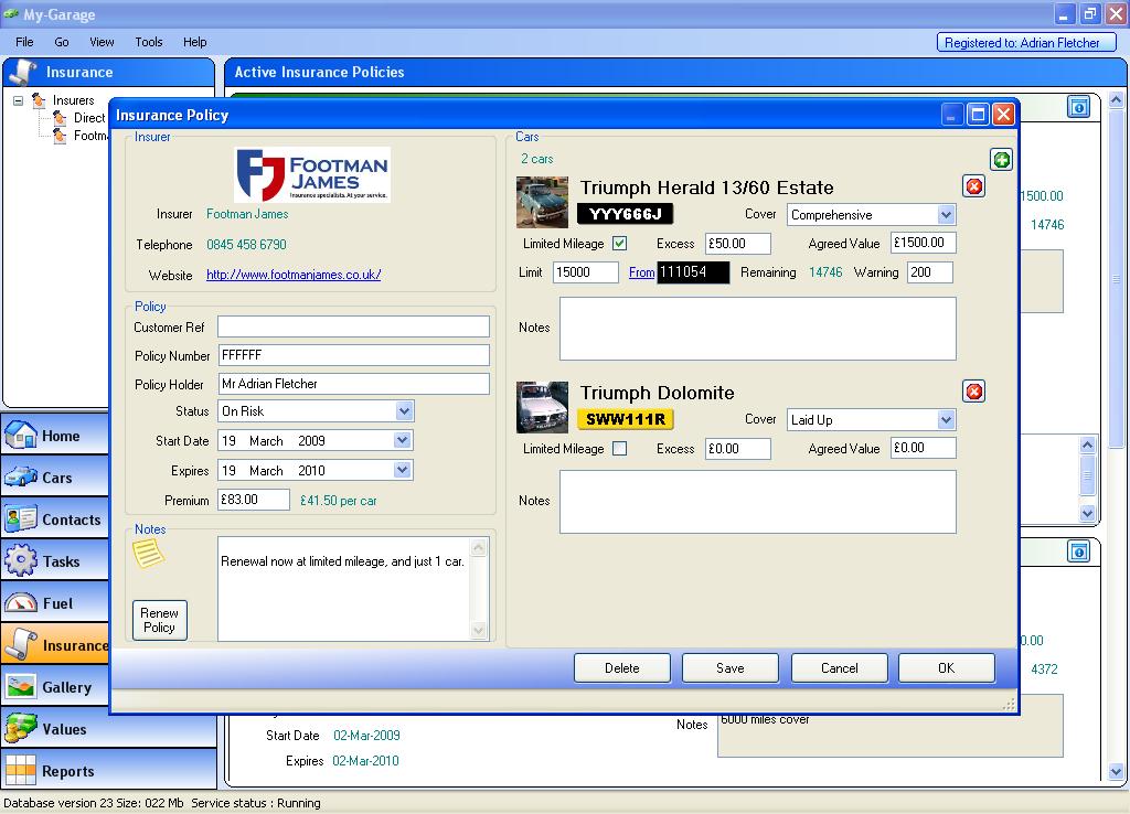 Create a multi-car insurance policy, with limited mileage warning that will war you before you reach the agreed limited mileage.